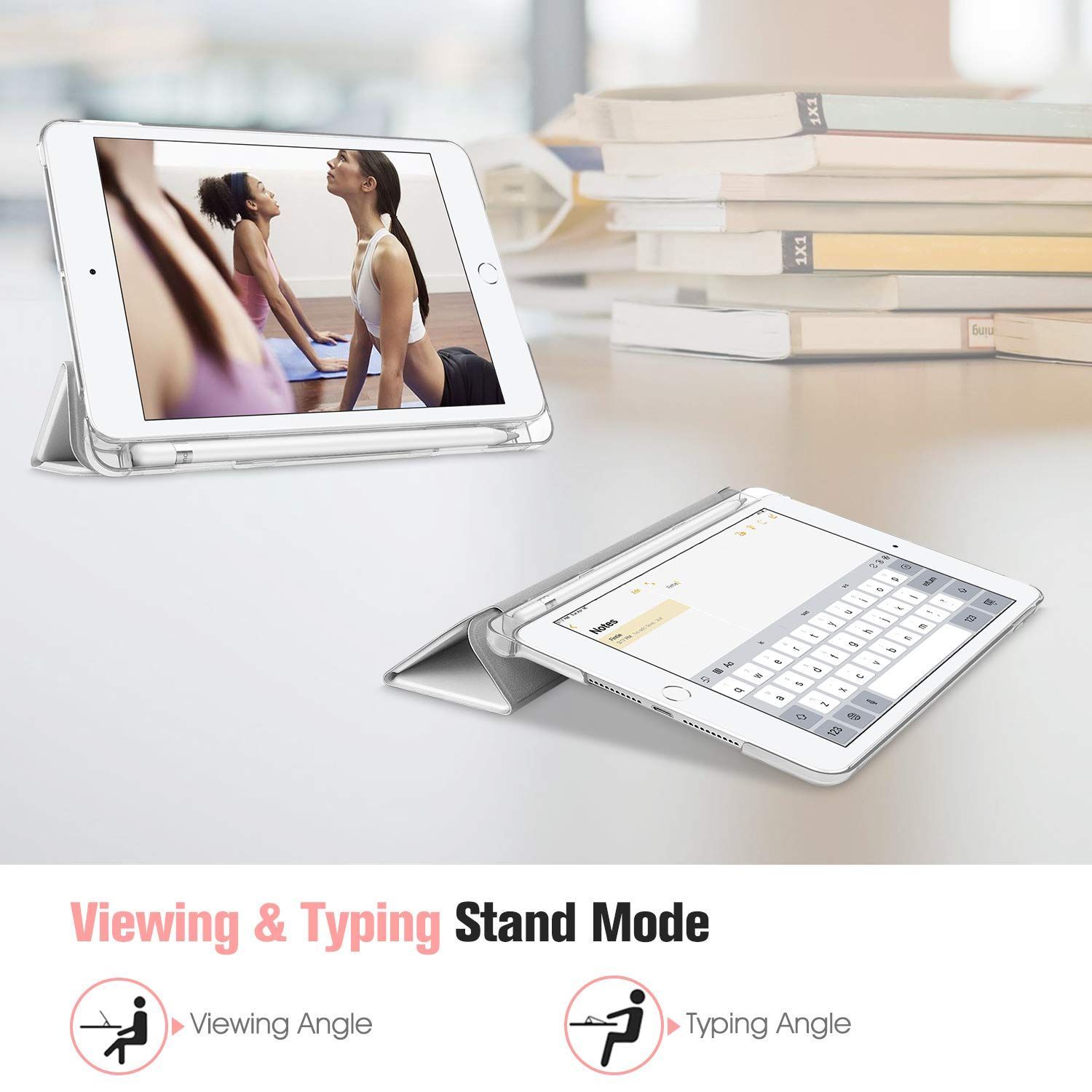 Fintie for iPad Mini 5 2019 ケース クリア 半透明 バックカバー Pencil 収納可能 ペンホルダー付き 薄型 軽量 スタンド オートスリープ機能 第5世代 7.9 インチ 保護カバー(モデル番号A2133、A2124、A2126、A2125) (モデル番号A2133、A2124、A2126、A2125) (シルバー)