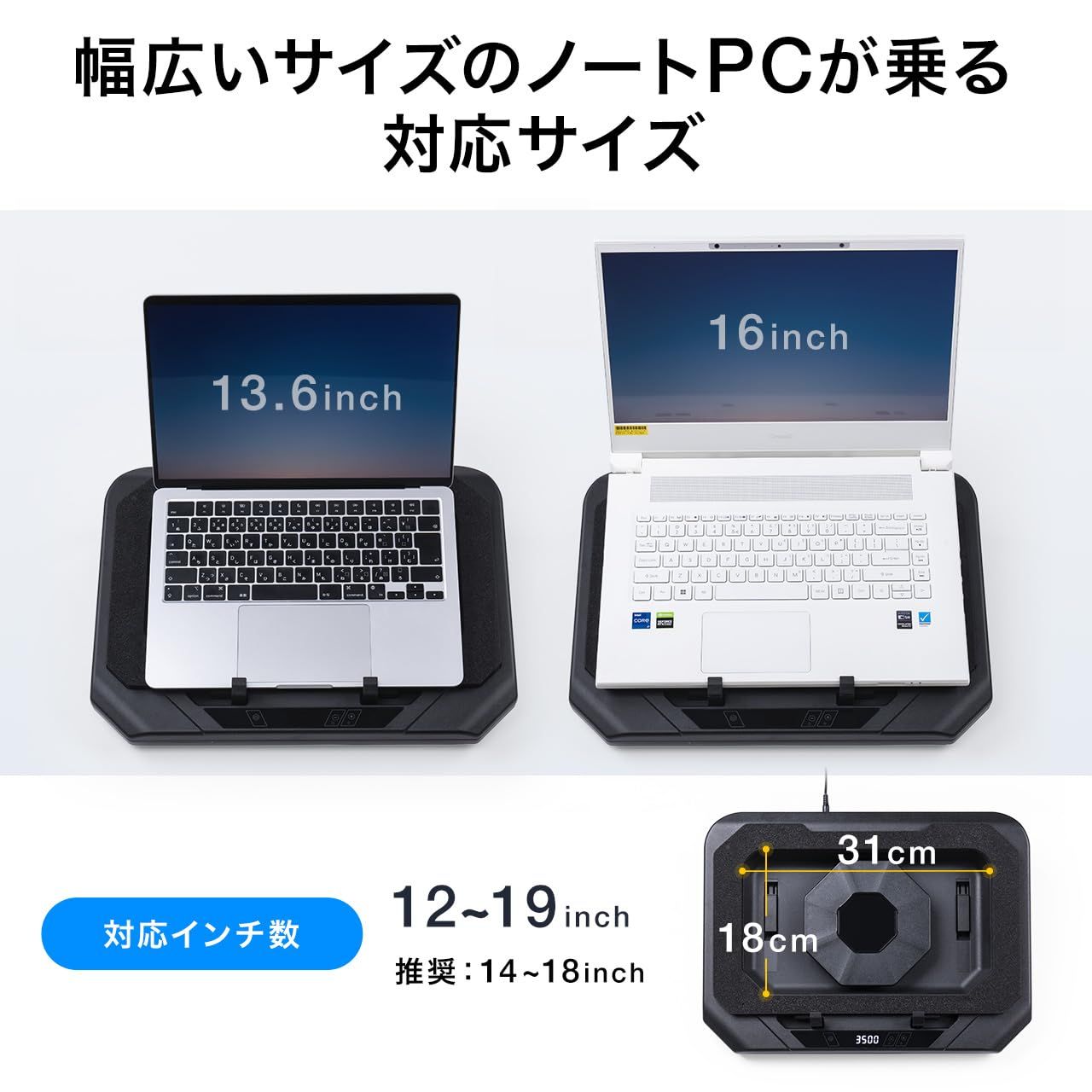 サンワダイレクト ノートパソコン 冷却 スタンド ターボファン 超強力 12~19インチ対応 無段階風量調整 角度調整 USBハブ 3ポート AC電源付き 冷却台 クーラー 400-CLN 037