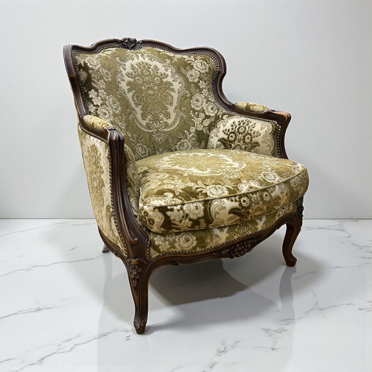 domani ドマーニ ルイXV 1人掛けソファ シングルソファ ルイ15世 ソファー 椅子 鋲打ち 猫脚 karimoku カリモク アンティーク ヴィンテージ