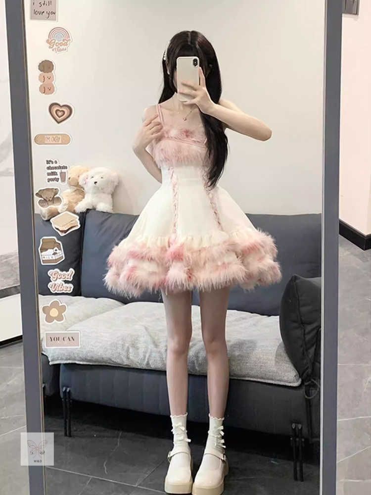 冬用ロリータセット ショートファーコート フリルスカート 甘い 少女 防寒 パーティー デート 冬の甘い夢を纏う少女の装い ふんわり温もりと優雅さを紡ぐ