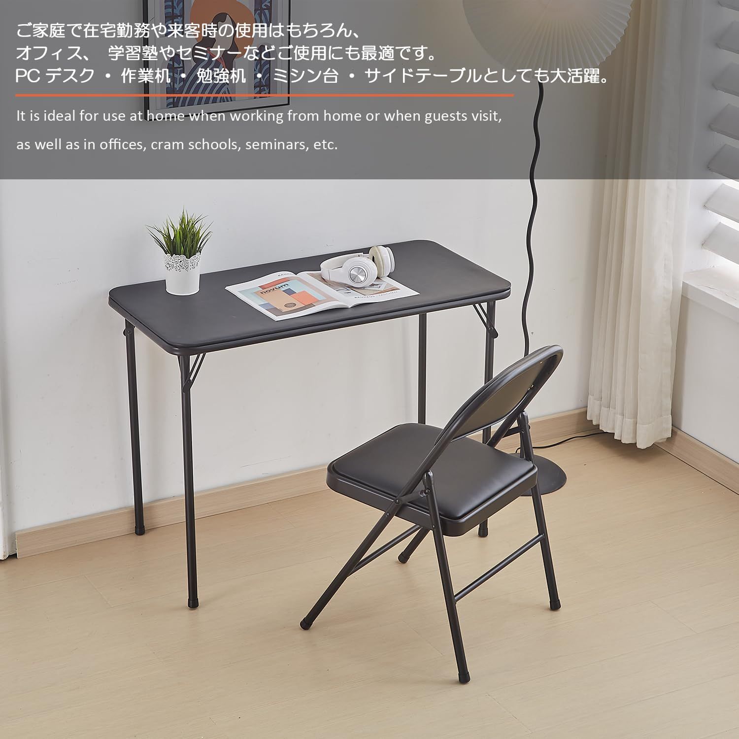 【様々な用途で大活躍】折り畳みできるので、軽量で持ち運びやすい。ご家庭で在宅勤務や来客時の使用はもちろん、オフィス、学習塾やセミナーなどご使用にも最適です。PCデスク・作業机・勉強机・ゲーミングデスク・ダイニングテーブル・ミシン台・サイドテーブルとしても大活躍。また、アウトドアテーブルとして、キャンプ・お祭り・活動現場・BBQなどのシーンでも適しています。