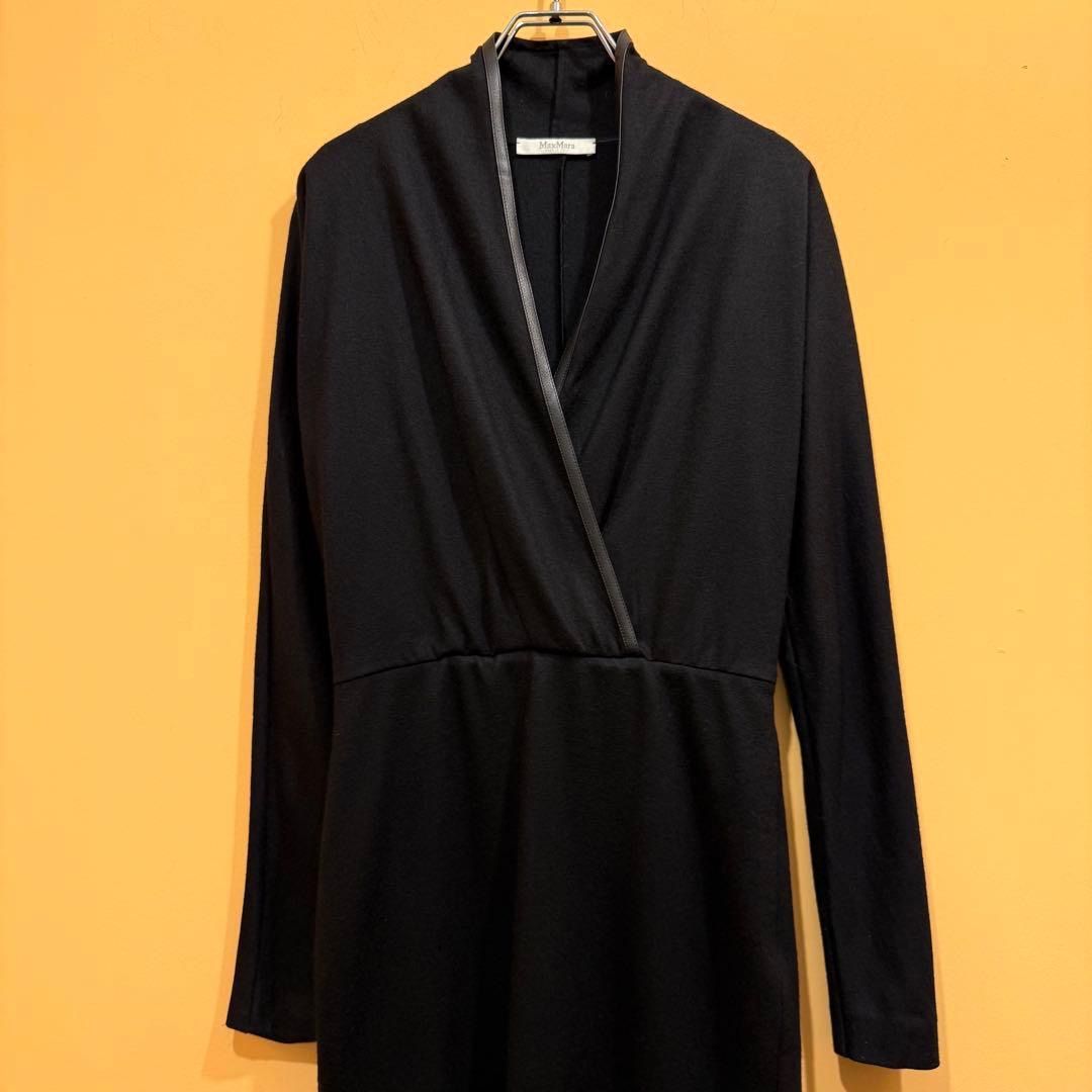 Max Mara レザー切り替え ワンピース 40 ブラック み