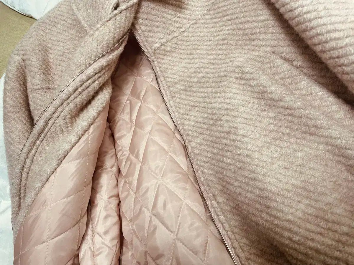 ウール 100% のピンクのブルゾンジャケット。やわらかいピンク色なので、顔を明るくします。同じ新品質で保存されています。