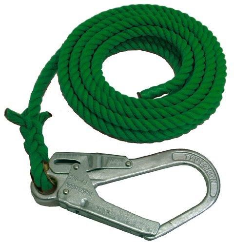 補助 誘導 介錯 ロープ片側大口径フック付10 m緑