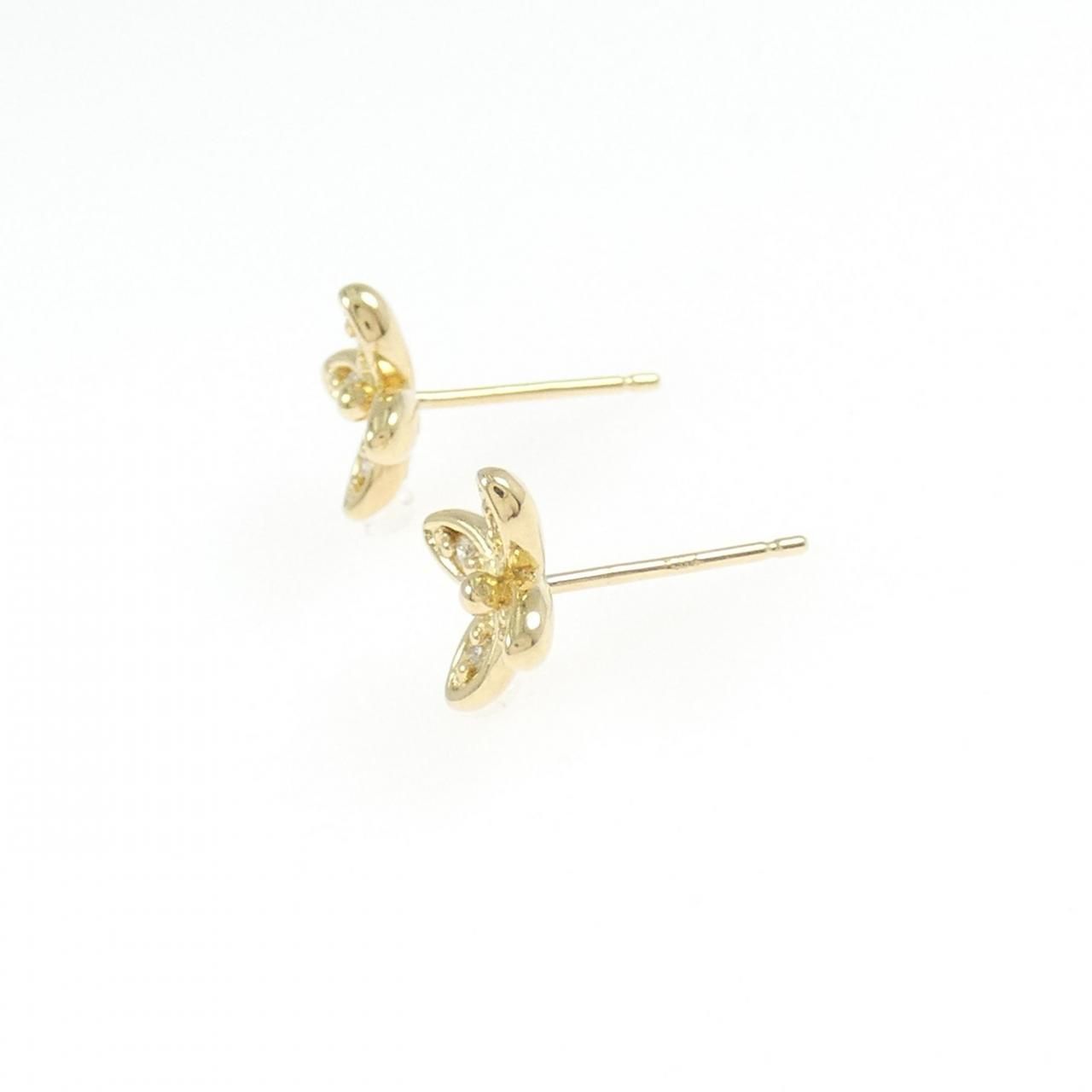 K 18 YG フラワー ダイヤモンド ピアス 0.04 CT