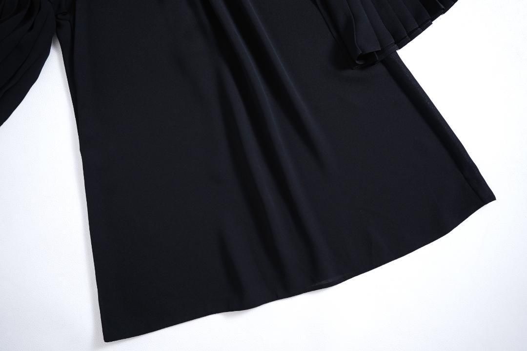 アーティスティックなプリーツが袖に動きを与え、どの角度から見ても美しい佇まいを演出。フロントにはギャザーが寄せられ、立体的なフォルムと華やかな印象をプラス。