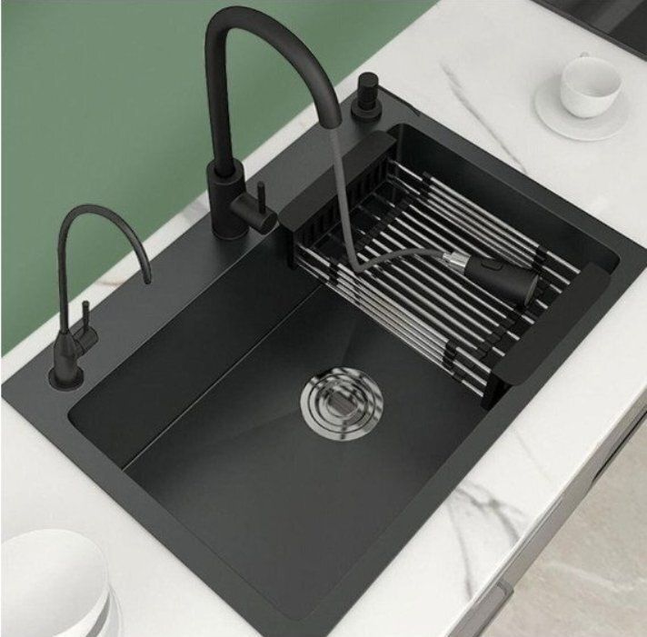ナノブラックステンレスシンク大単槽家庭用キッチン流し流し洗面器セットです