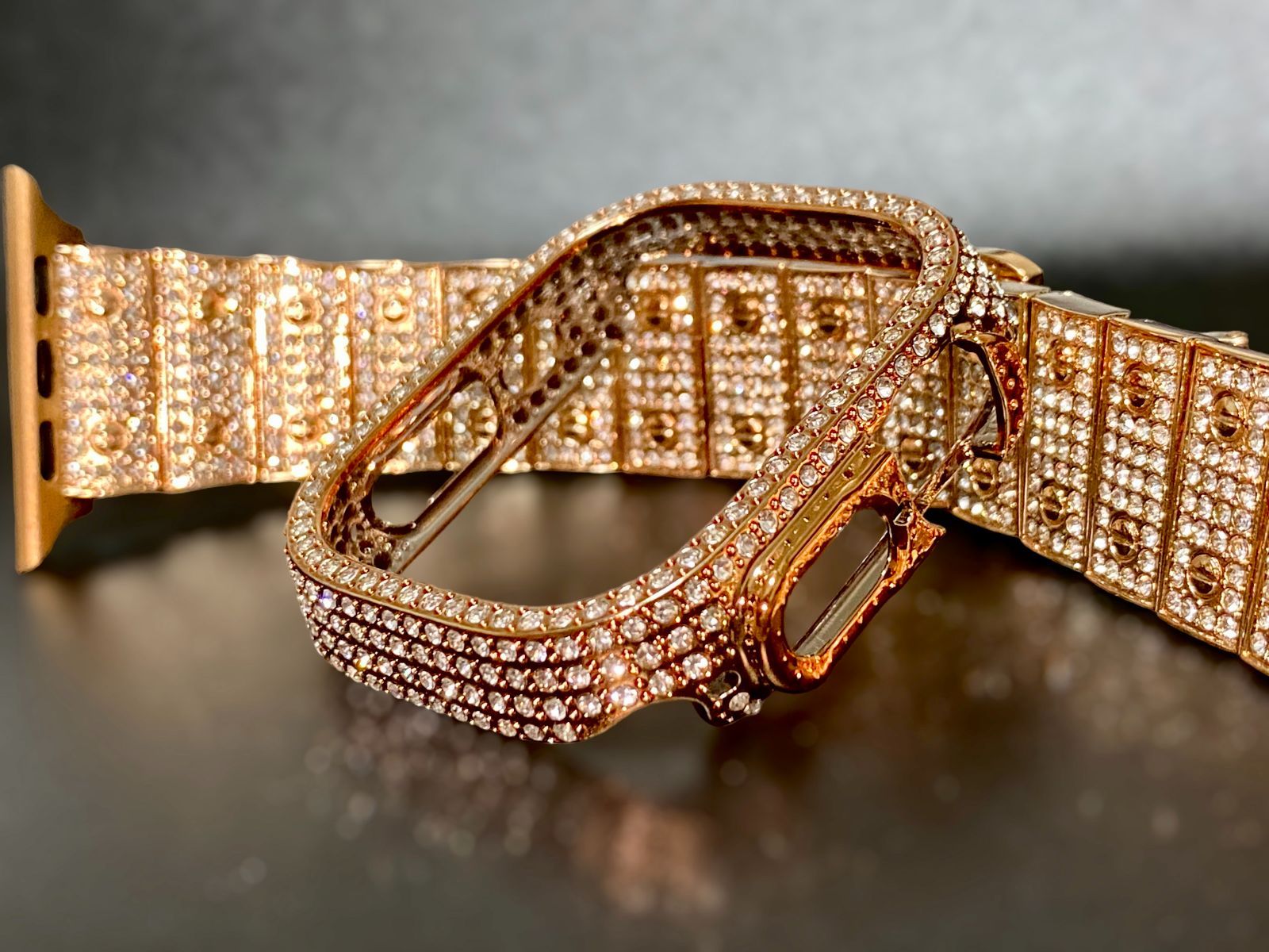 ローズゴールド カバーベルト調整器セットBox付き ステンレスベルト Apple Watch キラキラ アップルウォッチステンレス バンド ケース ultra 49 mm