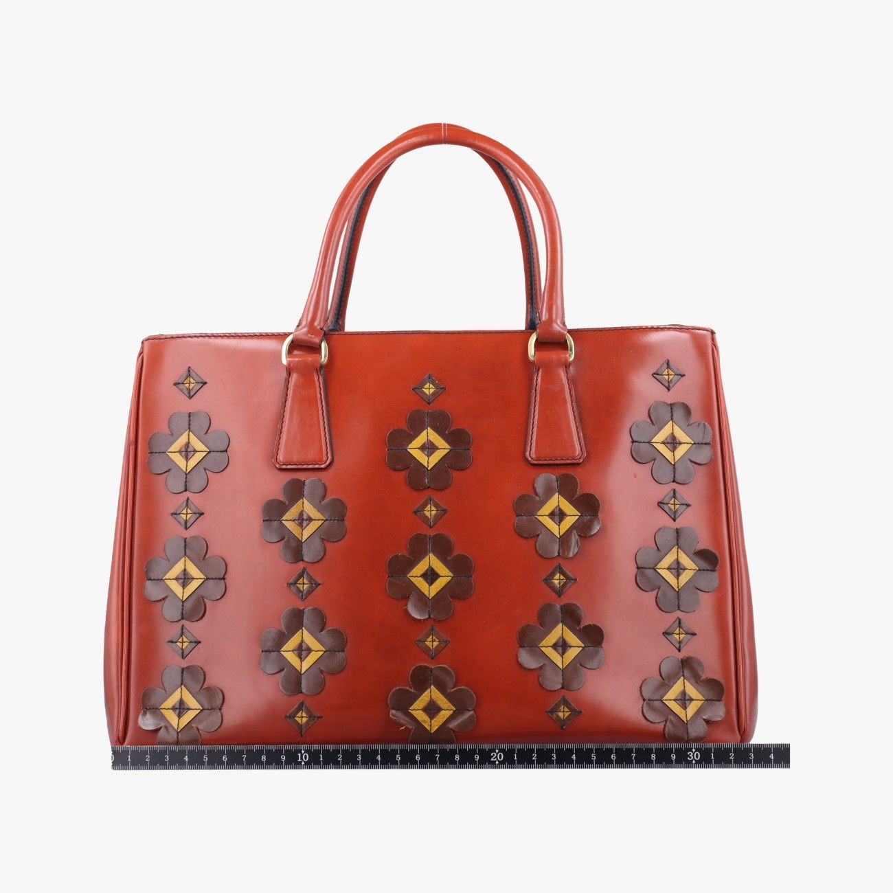 プラダPradaミディアムフローラルアップリケダブルジップレッド×ブラウン×イエローパテント