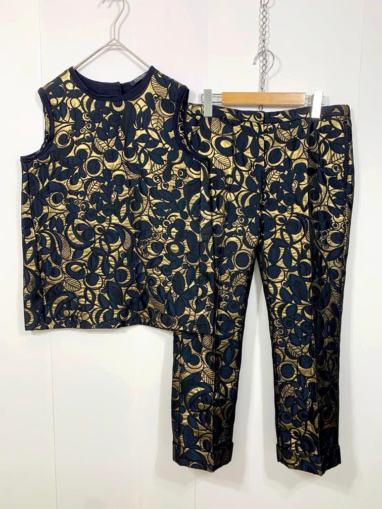 S MaxMara エスマックスマーラ ジャガード ノースリーブ-パンツ セットアップ 紺×ゴールド レディース