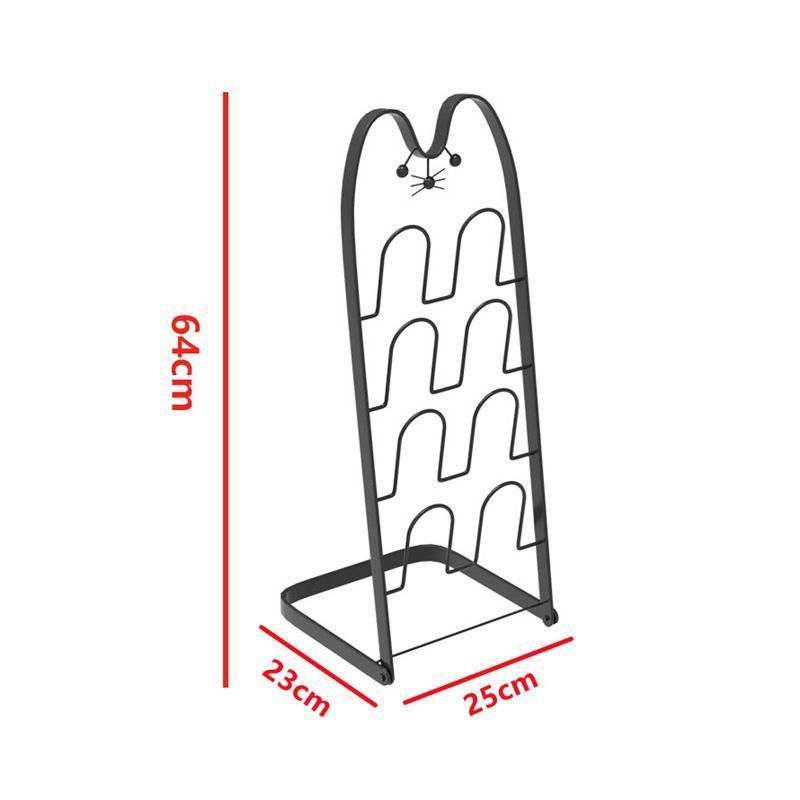 かわいい猫のスリッパラックです。折り畳み可能でスリムなデザインなので、場所をとらずに設置ができます。最大4足までスリッパを置くことができるので、家族やお客様のためにも便利です。金属製なので丈夫で長持ちし、玄関やリビングなどの場所にぴったりです。猫のデザインはとてもかわいく、お部屋のアクセントにもなります。ぜひ、かわいい猫のスリッパラックを使って、おしゃれで便利な生活をお楽しみください。