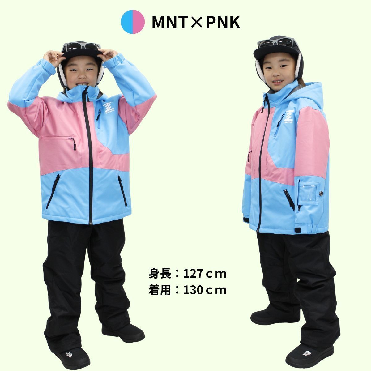 BANNNE バンネ ジュニア キッズ 子ども スキーウェア 上下セット スノーウェア スキー スノーボード 雪遊び 外遊び ウィンタースポーツ BNS-705 ミント×ピンク