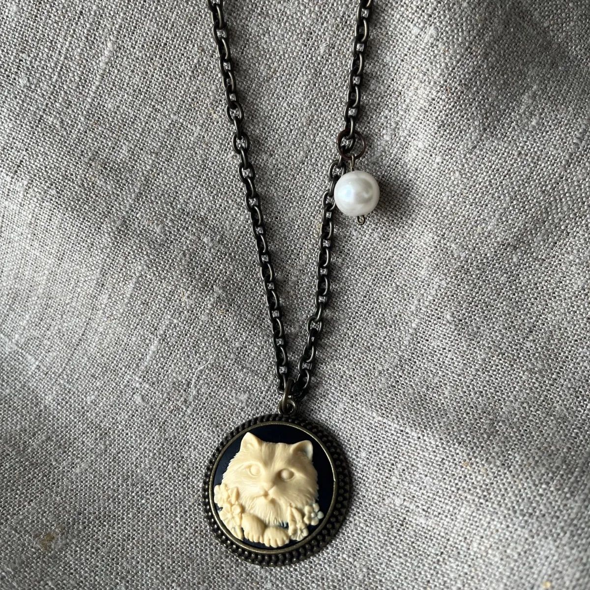 ヴィンテージカメオネックレスキャット