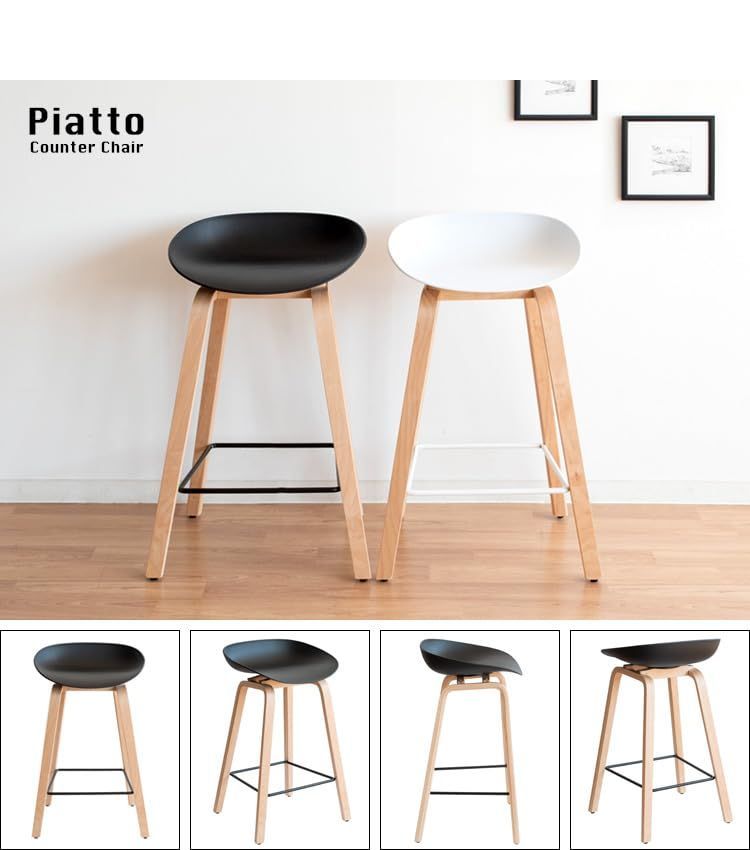 カウンターチェア ピアット 天然木 北欧 幅49 奥行40 高76 5 cm KNC K 220 WH ホワイト