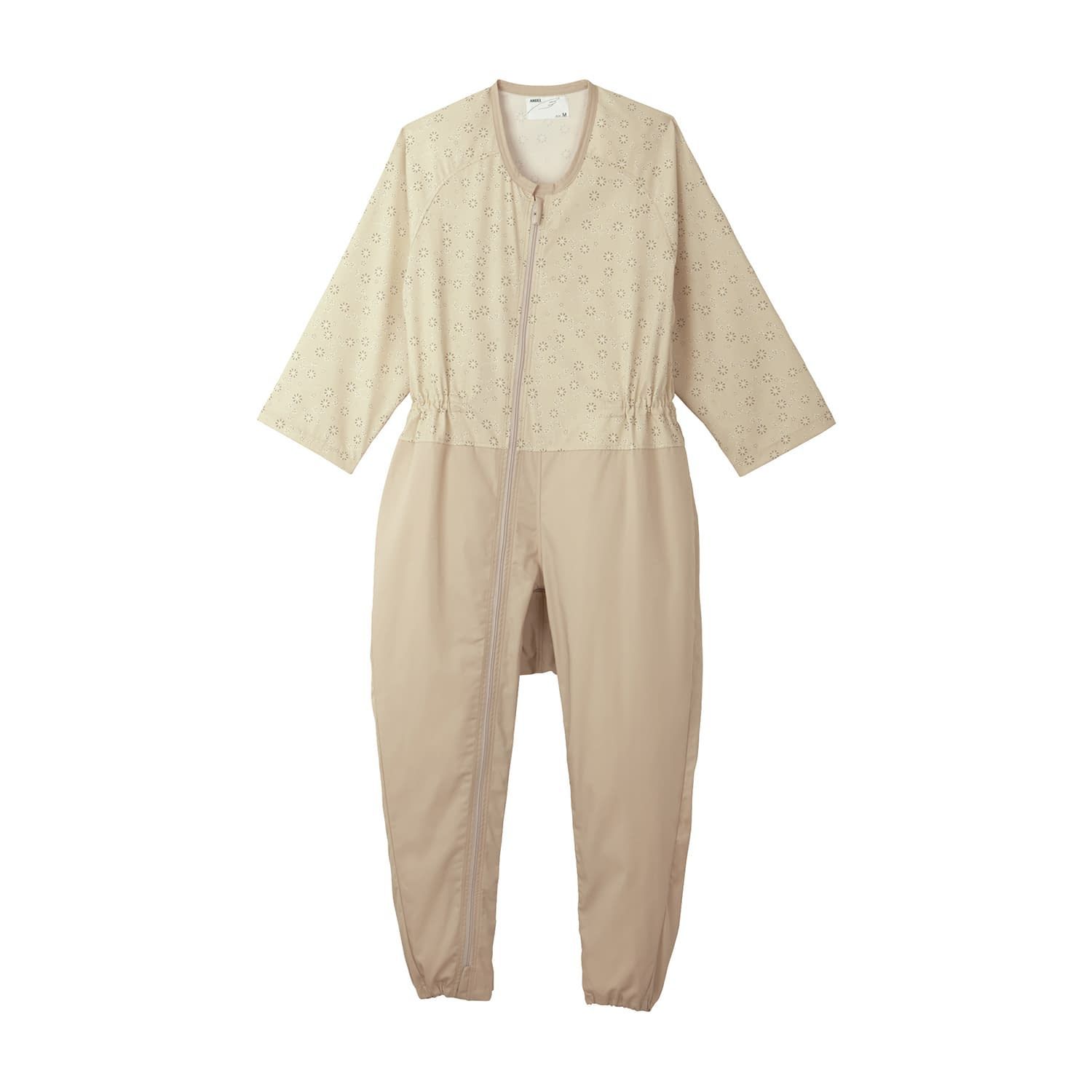 コンビネーション フルオープン型 介護ねまき 24-4921-0107 レーシーフラワー クリーム 日本エンゼル 5038 M ツイル