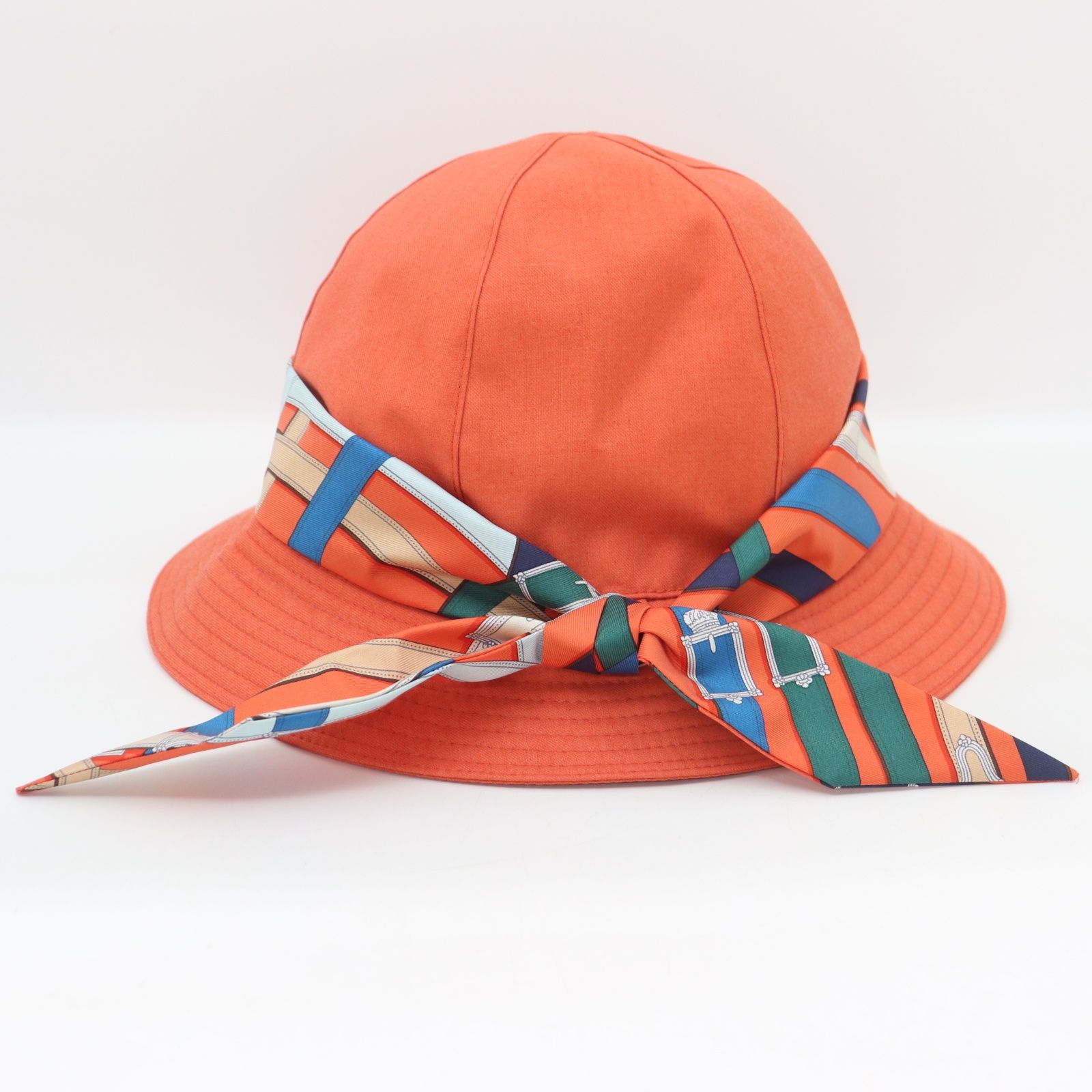 HERMES エルメス バケットハット ツイリー オレンジ シルク 帽子 サイズ 57 レディース ポリエステル ビスコース