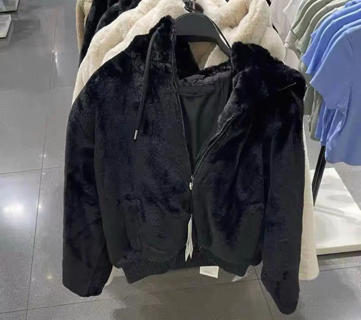 ZARA フェイク ファー フード ブルゾン 黒