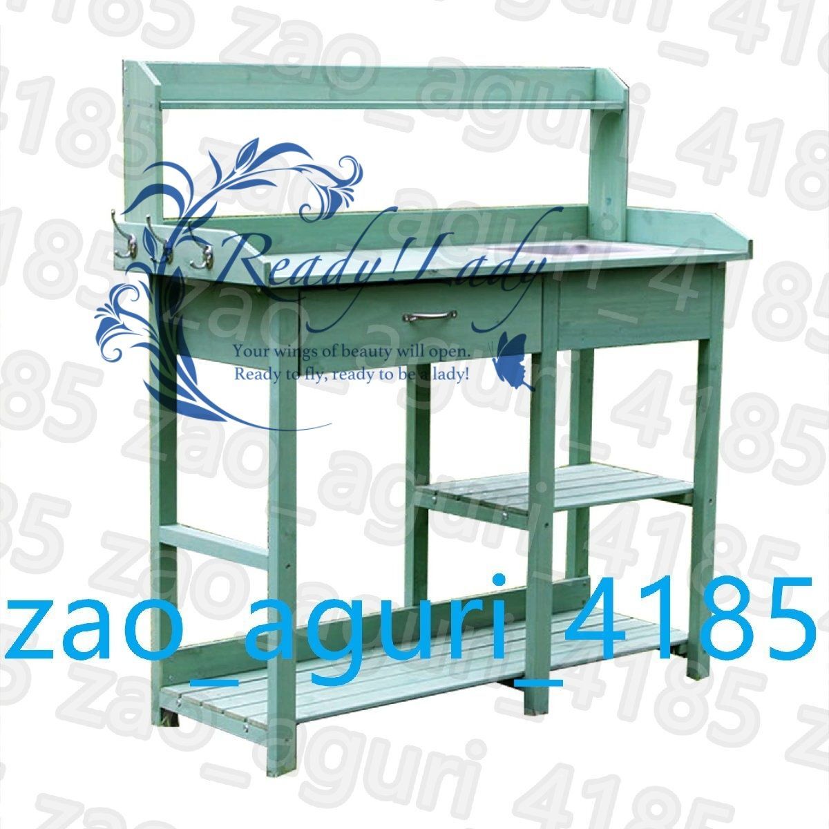 ポッティングテーブルベンチフックとステンレス鋼のシンク 木製の屋外ガーデンプラントワークステーション パティオ芝生ガーデン用