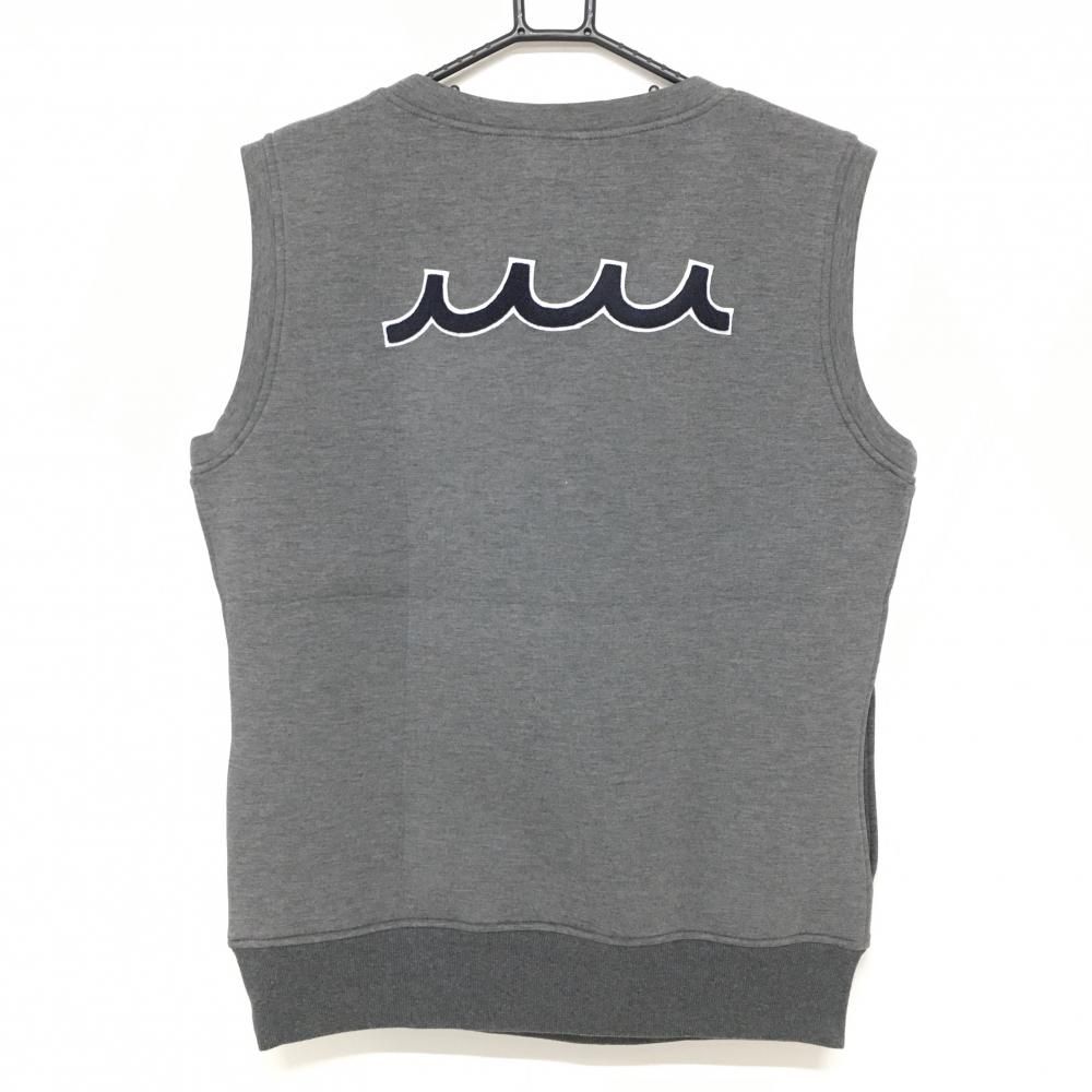 ムータマリン ベスト 杢グレー×ネイビー Vネック ワッペン ダンボールニット調 メンズ XL ゴルフウェア モデル muta