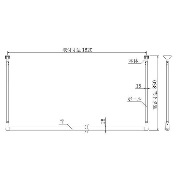 【寸法】高さ寸法/軒天からの高さ:850mm取付寸法/竿の長さ:1820mmポール径:15φ竿径:28φ本体寸法W×H×D:36×30×68mm