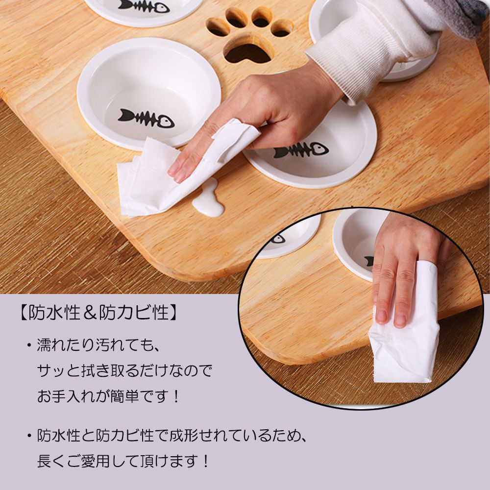 ・天然由来の防腐剤でコーティングしているので防水性がありご飯やお水をこぼしてもサッと拭く事が出来ます。