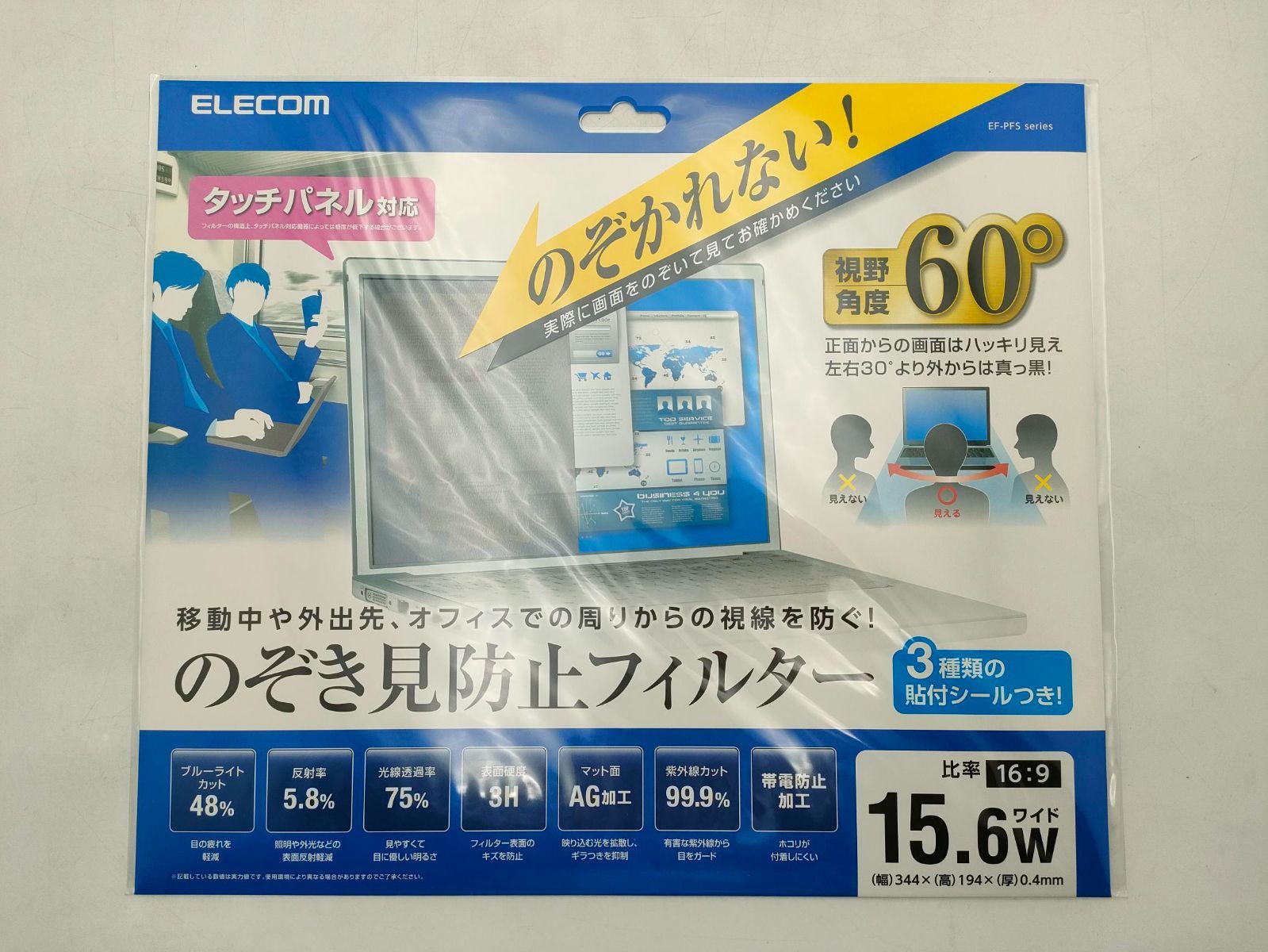 のぞき見防止フィルター セット EF-PFSシリーズ EF-PFS 156 W PCフィルター PCのぞき見防止フィルター 15.6インチ ブルーライトカット 帯電防止加工 紫外線カット99.9 エレコム ELECOM