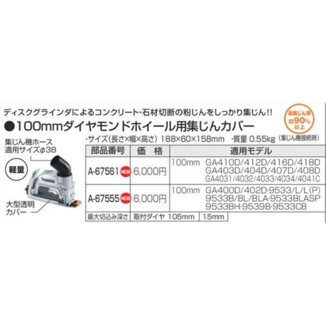 マキタ 100 mm ダイヤモンドホイール 用 集じんカバー A 67555 集塵 ディスク グラインダ 石材切断 粉じん コンクリート