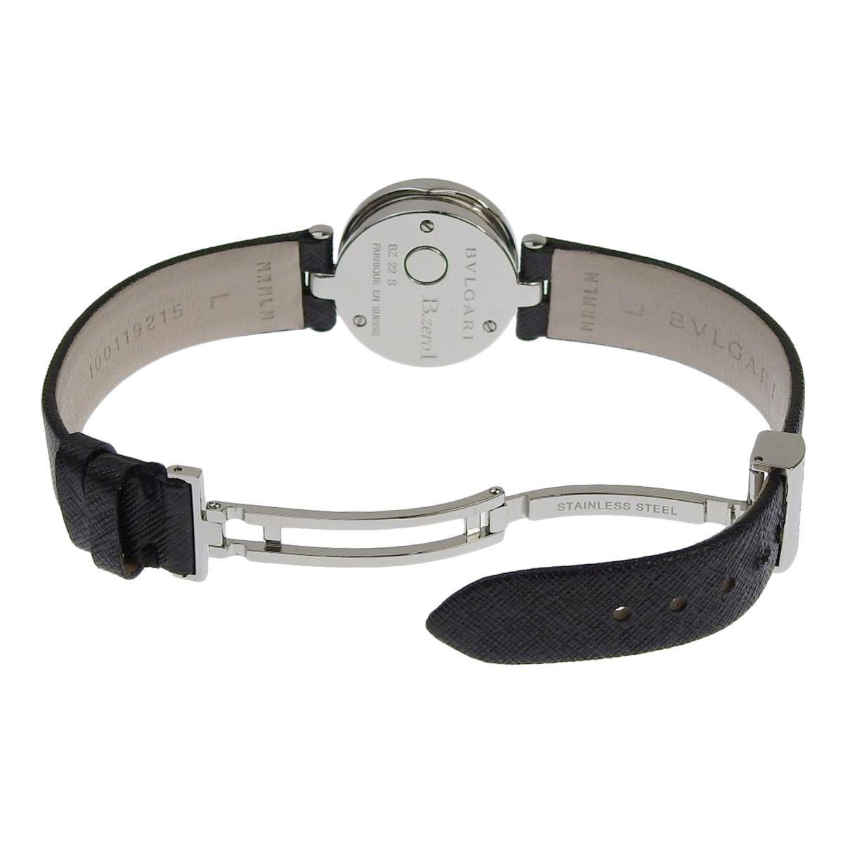 保証書付 ブルガリ ビーゼロワン BZ 22 BSL SS 革 ステンレス クオーツ 腕時計 2013年 ブルー ブラック レディース アラモード