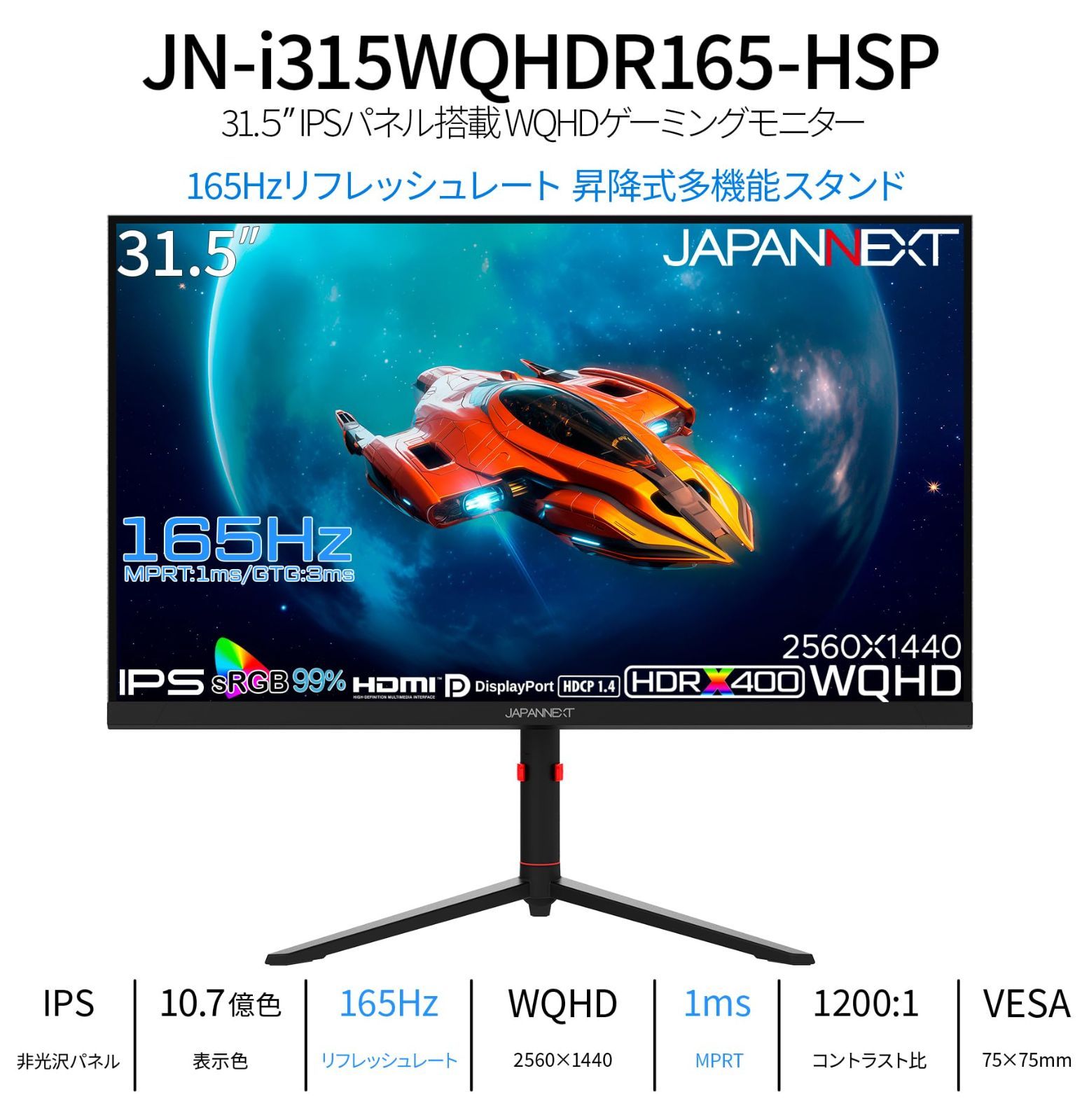 JAPANNEXT 31.5インチ ゲーミングモニター 165Hz 1ms WQHD 2560x1440解像度 IPS パネル ディスプレイ (HDMI/DisplayPort/VESA対応/高さ調節/回転(ピボット)機能/ブルーライトカット / 視野角178°) JN-i315WQHDR165-HSP
