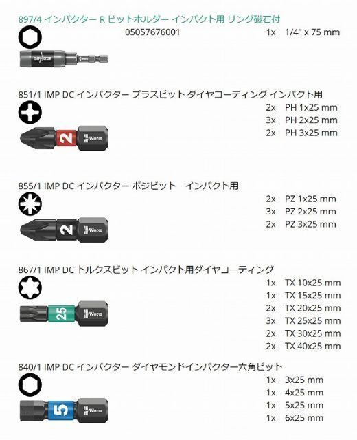 Wera 1 4インパクトドライバービットセット30点セット ダイヤモンド コーティングBit Check 30 057690