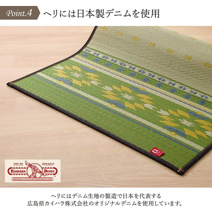 国産(九州産)のい草を使用しており、一本一本が太く、表皮が厚く繊維がキメ細かいので弾力性があり耐久性に優れています。