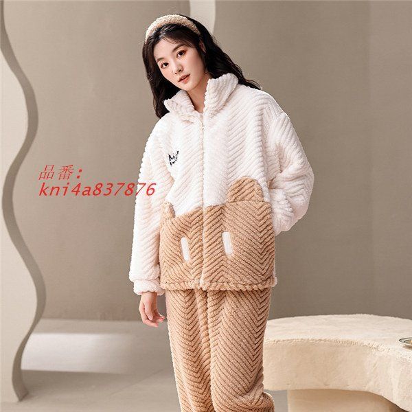 ペア パジャマ クマ柄 冬用 カップル 部屋着 ルームウェア 厚手 もこもこ レディースメンズ かわいい 癒し感 寝間着 あったか kni 4 a 837876