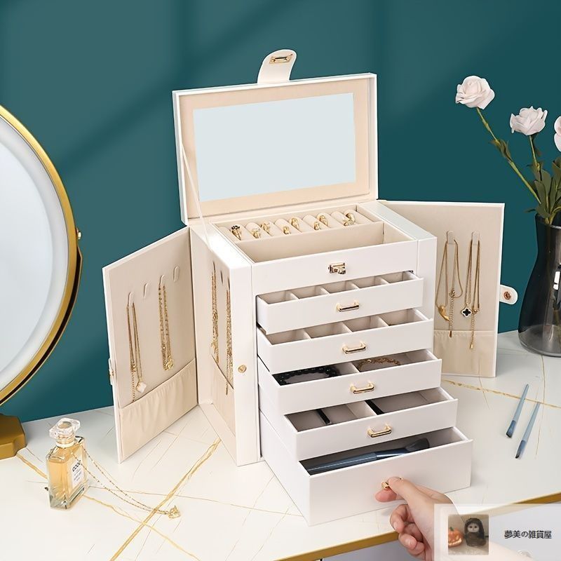 ジュエリーボックス ボックス 持ち運び 5段 大容量 ミラー付き 鏡 収納 箱 B 0 X 5 メイクボックス 化粧箱 ネックレス 指輪 ピアス イヤリング シンプル おしゃれ インテリア5-75