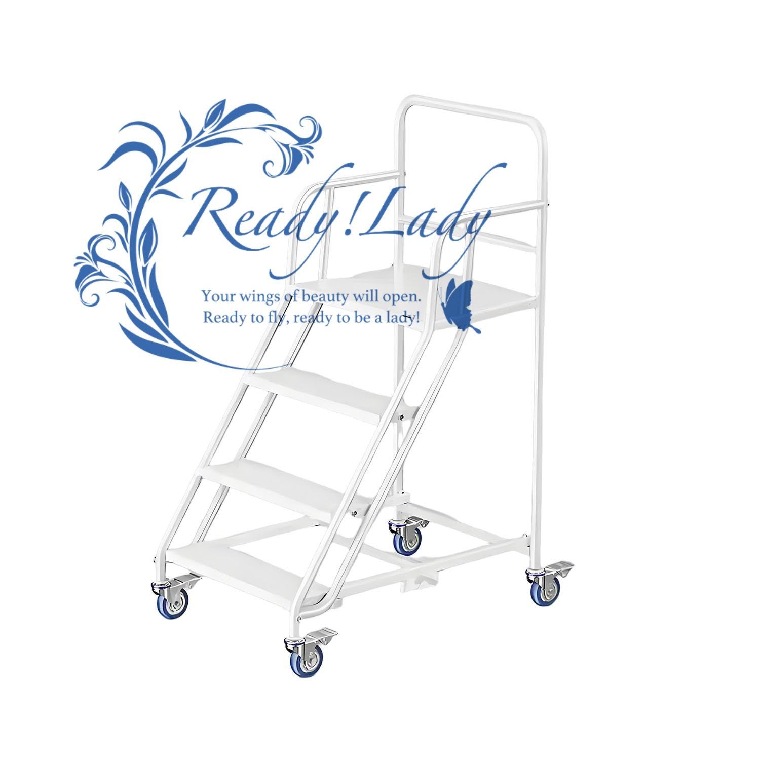 ロック付きキャスター:4輪のローリングラダーは、床面を静かにスムーズに移動できます。使用時はホイールをロックして固定し、移動時はロックを解除して楽に移動できます。