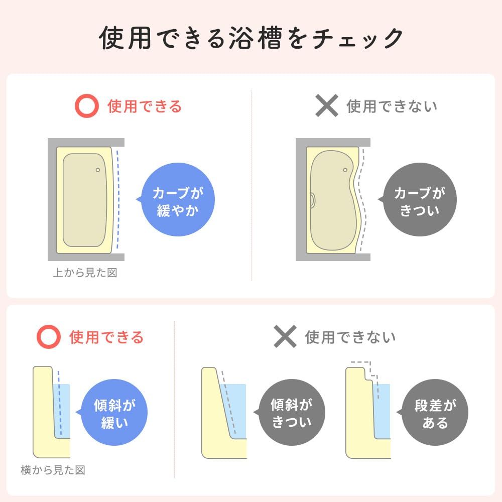 ■対応しない浴槽:木製、大理石、タイル張りの浴槽、劣化、破損している浴槽