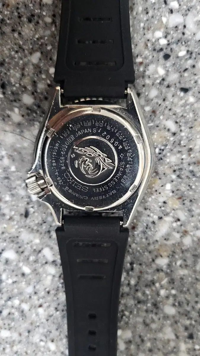 SEIKO プロフェッショナル 6458-6020 クォーツ時計です。オールブラック カラーで、重厚なデザインが特徴です。状態は写真の通り、ハンズの汚れが目立ちます。曜日表示、リュウズ操作はされていましたが、現在はできません。時間、日付は正常に作動します。日付も変わりますが、ベゼルが合いません。現在時計は作動中です。ベゼルも両方向に良く回ります。触って使う方、部品用で使う方、安く手に入れたい方、ご連絡ください。安くお譲りします。
