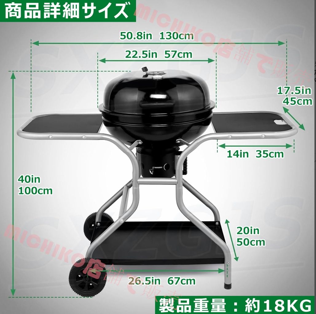 【大きな収納スペース、移動が簡単】このグリルには、サイドテーブル 2 つ、フック 4 つ、大きな下部収納ラックが付属しており、グリルに必要なものをすべて簡単に収納できます。移動しやすいよう頑丈な車輪が 2 つ付いており、短距離の移動時に分解したり重いものを持ち上げたりする必要がありません。