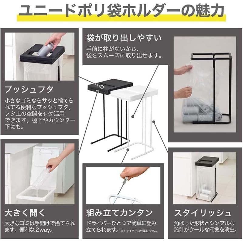 co.jp 新輝合成 トンボ ユニード ゴミ箱 ゴミ袋 ホルダー L 蓋を開けずにごみを捨てられる ブラック セット 幅23.5×奥行33.5×高さ55.5 cm 蓋付き 分別