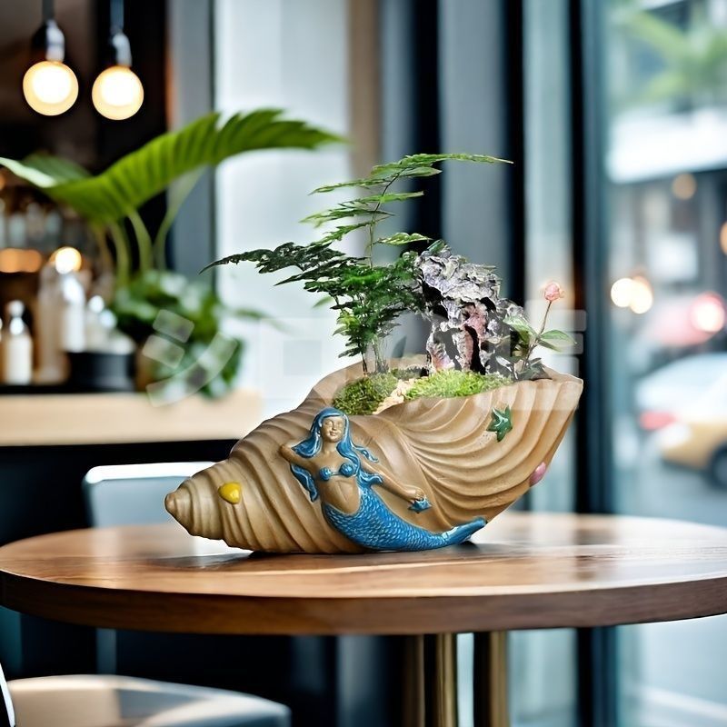 鉢植え 植木鉢 プランター プラントポット フラワーポット ガーデニング セラミック 屋内 室内 インテリア 庭 玄関 貝殻と人魚 マーメイド 多肉植物 サボテン オシャレ ギフト プレゼント 棚装飾