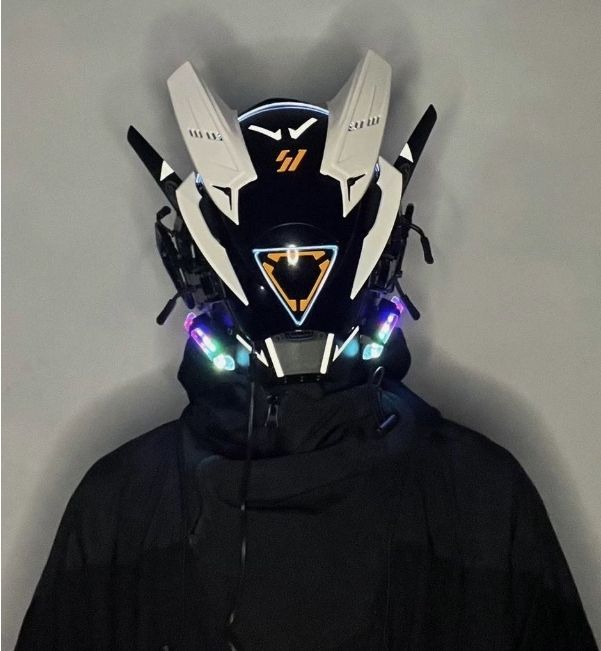 白三角白角白風刀サイバーパンク仮面マスク円灯翼おさげ音楽祭LED発光仮面コスプレコスプレ
