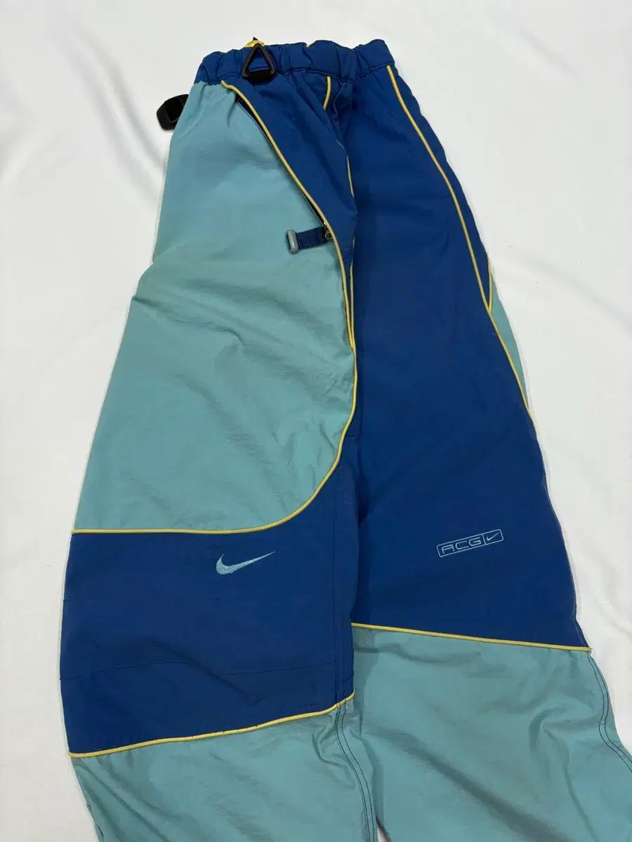 NIKE ACG スウッシュ スキーパンツです。ユニークなカラー 合わせが目を引く商品です。リップストップ ナイロン 素材で丈夫で快適に着用できます。