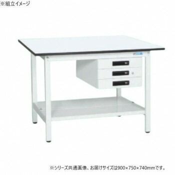 サカエ 軽量作業台KAタイプ 抗菌加工 キャビネット3段付 中板付 ×740 mm KA-097 CTMW