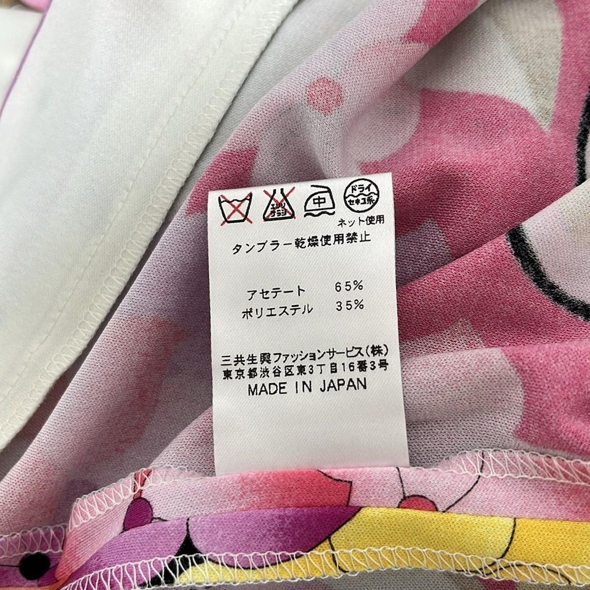 LEONARD レオナール ワンピース サイズLL レディース - アイボリー×ピンク×マルチ 長袖 ひざ丈 カンカン素材 花柄