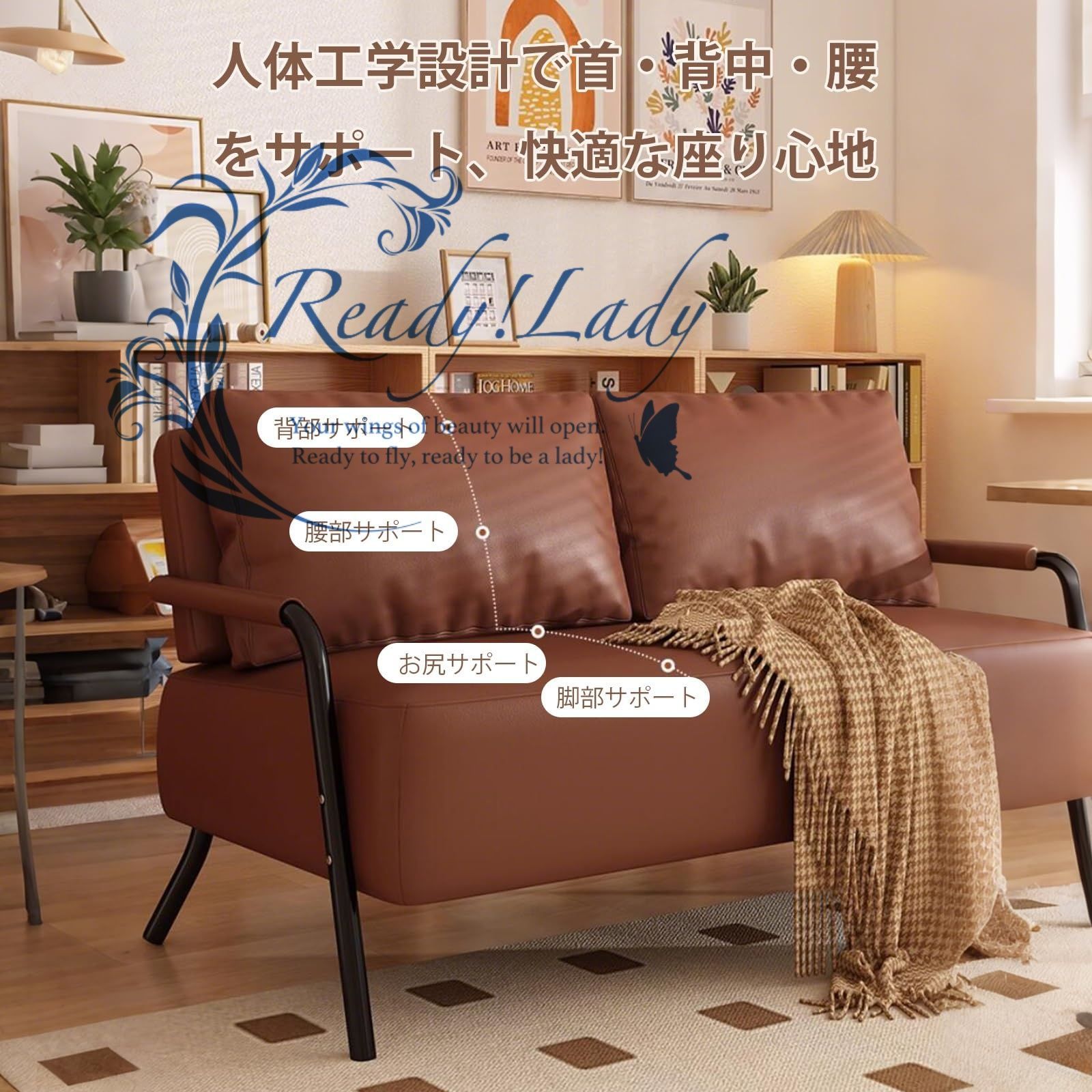 【丈夫で長持ち】ソファーベッド 2人掛け 耐荷重約150kgの頑丈設計。キャットスクラッチレザー素材で耐摩耗性が高く、ペットの爪や日常使用にも強い。