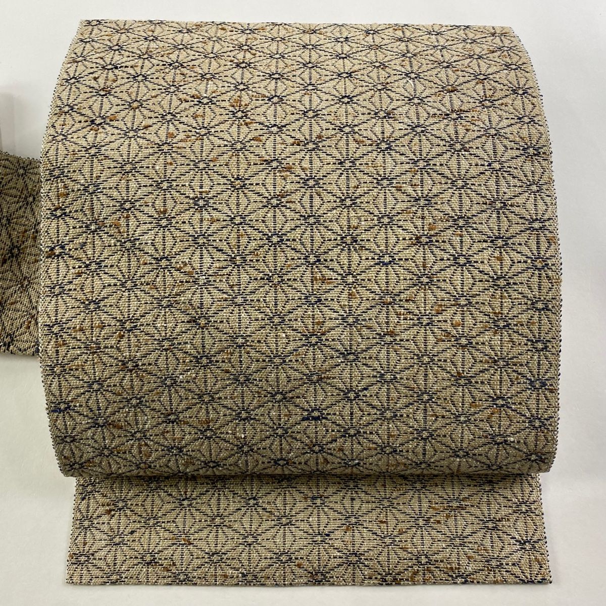 名古屋帯 落款 山ぜんまい織 紬地 八寸名古屋帯 諏訪好風 麻の葉 薄茶色 正絹