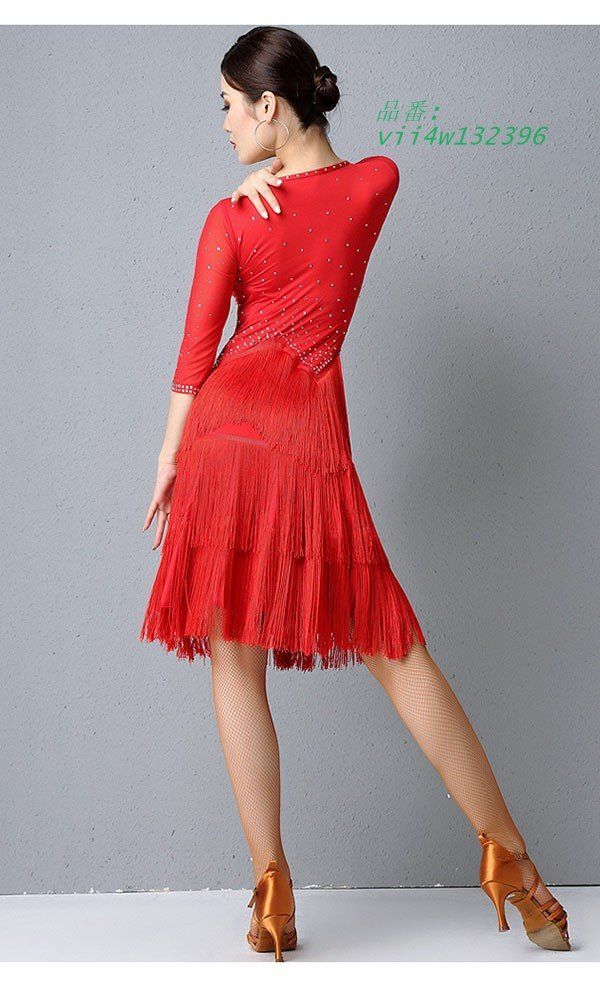 ラテン衣装 チャチャチャ 社交ダンス 社交ダンス衣装 ラテンドレス ワンピース セクシー 練習服 ラテンダンス ラテン競技着練習着 ダンス 七分袖 vii 4 w 132396