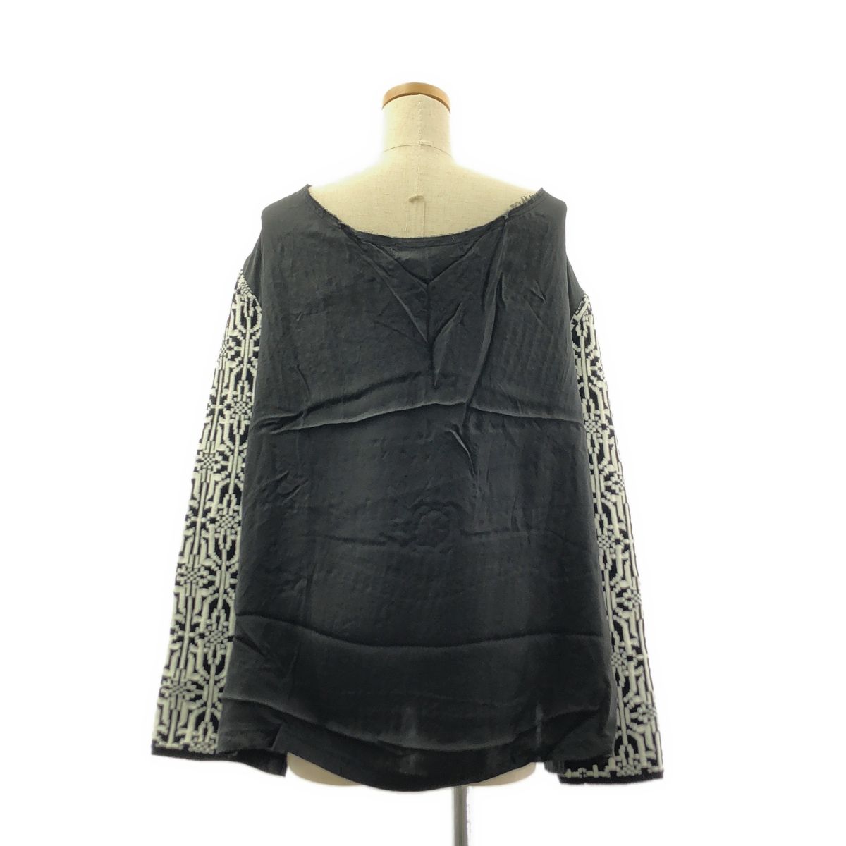 COMME des GARCONS コムデギャルソン 2021 AW 異素材 切替 ジャガード クルーネック ニット セーター S ブラック-ホワイト レディース