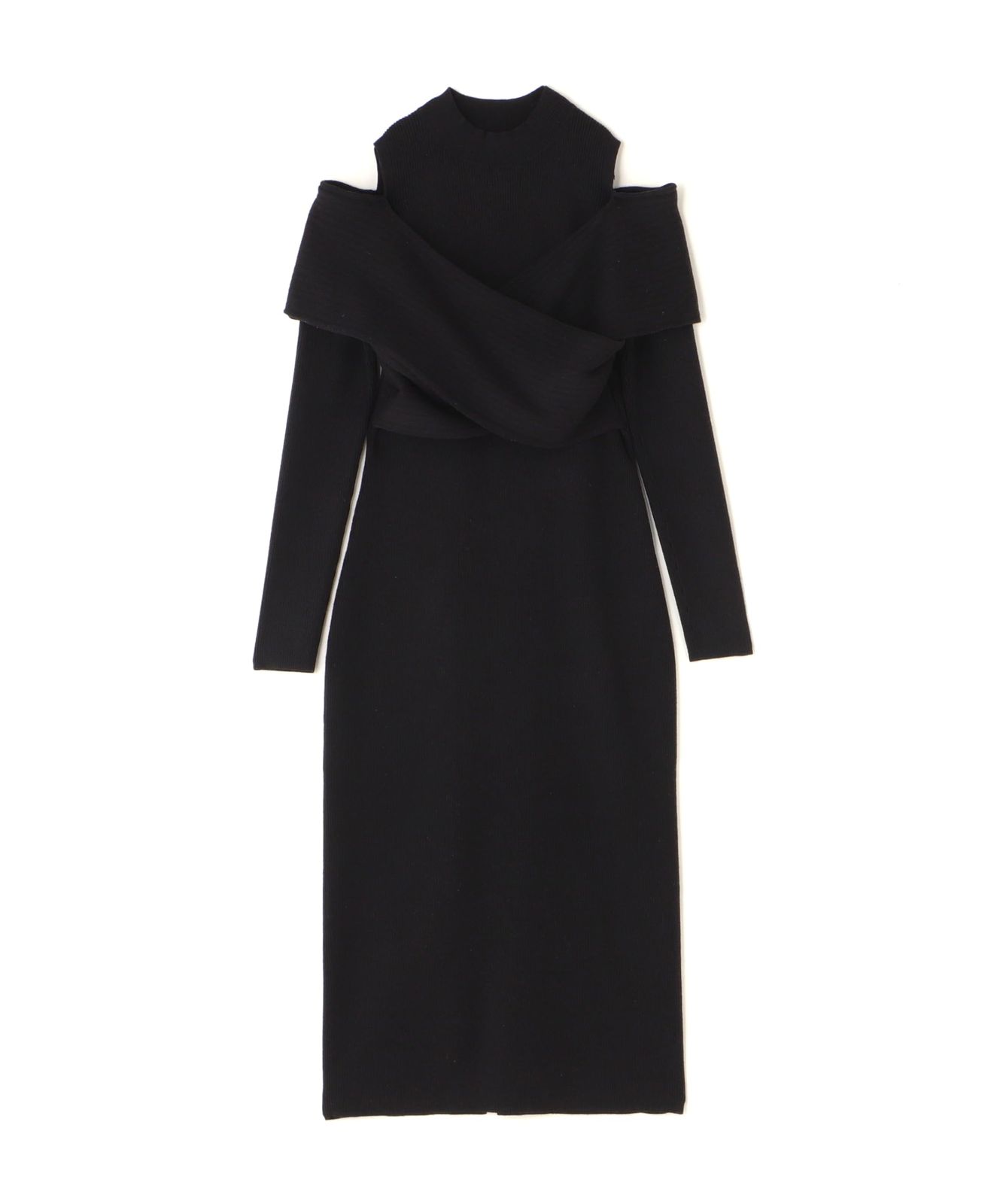 [ナチュラルビューティーベーシック] カジュアルドレス オフショルレイヤードニットワンピース レディース クロ