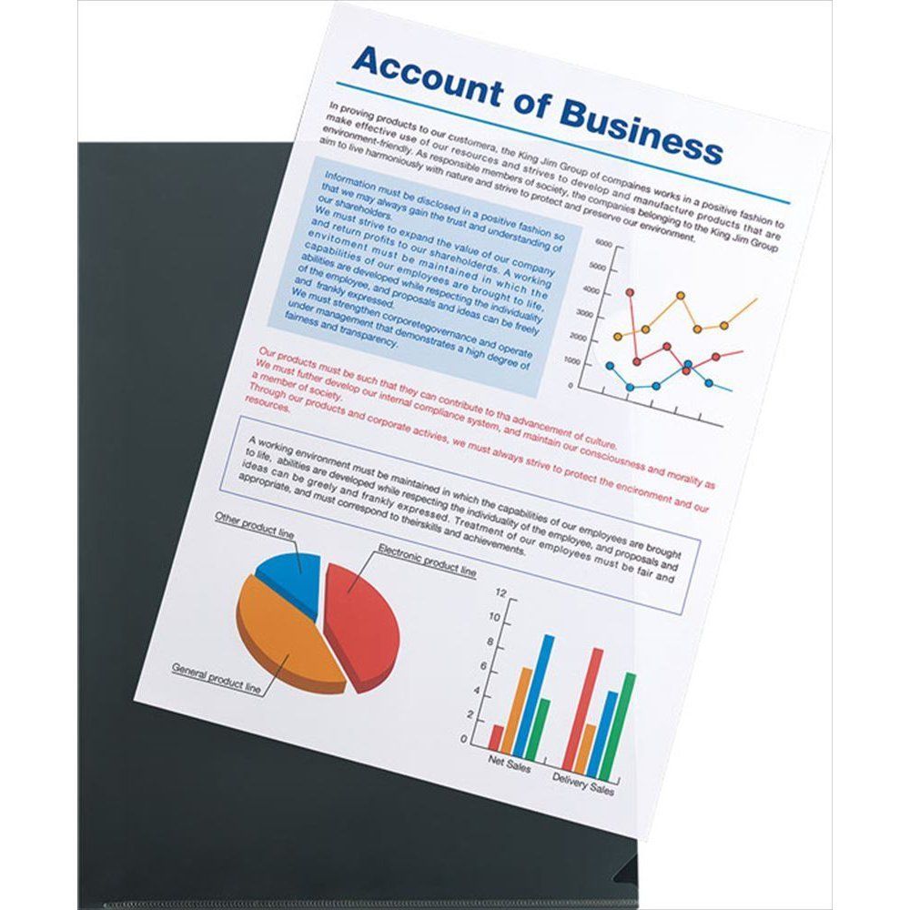 高透明タイプは、収納した書類がきれいに映える、透明度の高いA4サイズのクリアファイル。