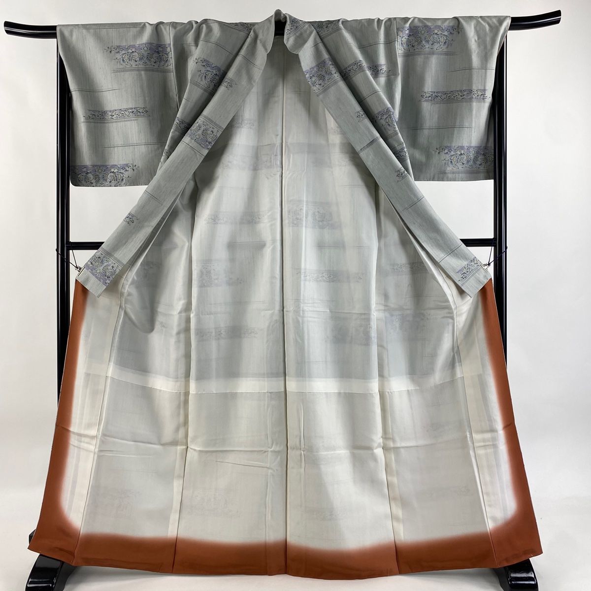 結城紬 身丈168 cm 裄丈68 L 袷 奥順 はたおり娘 やまと 証紙 草花 亀甲絣 青灰色 正絹